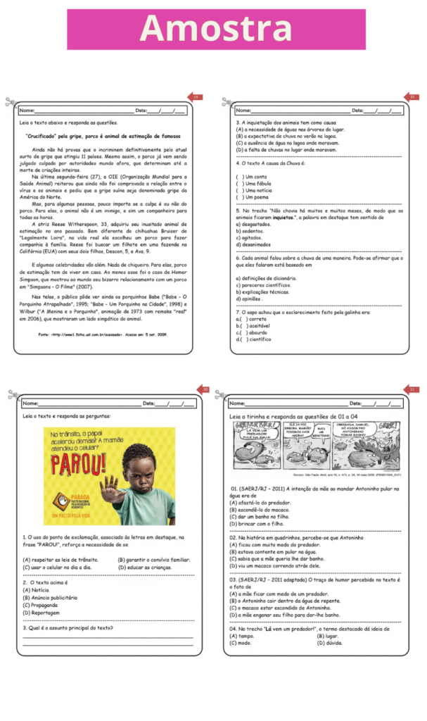 Sim! O caderno foi criado com foco em desenvolver habilidades essenciais para a leitura e interpretação de textos, fortalecendo a base da alfabetização de forma leve e divertida.